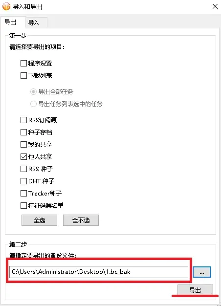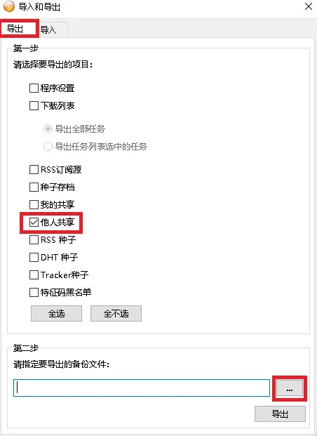 选择 要导出的内容 这里只选择 他人共享 点击 … 选择保存路径