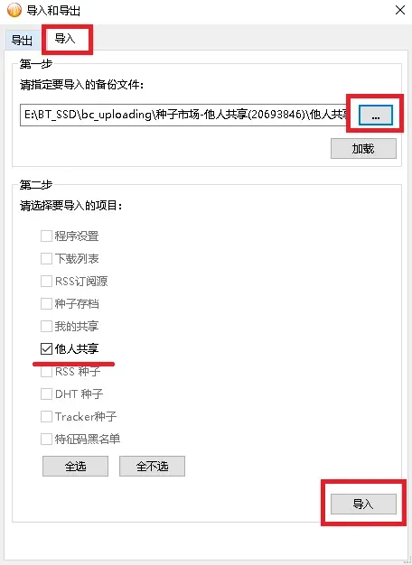 选择 导入 选项卡 点击 … 选择要导入的配置文件