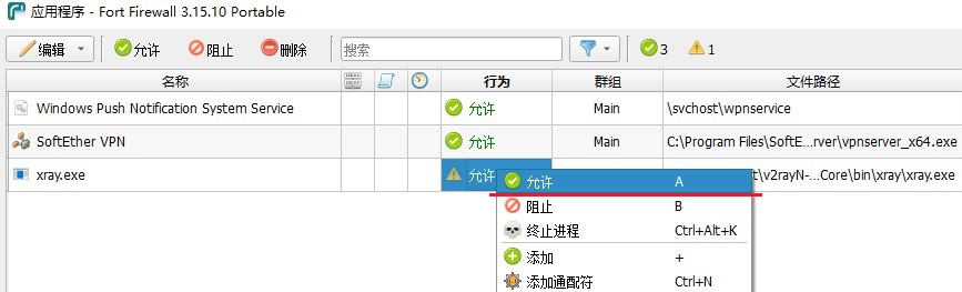 找到要添加的程序 右键选择 “Fort Firewall...”