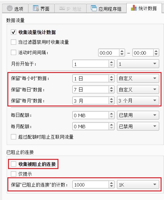 收集已经阻止的连接 选项可以关闭