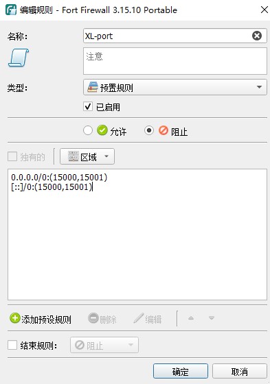 名称可自定义 这里使用 “XL-port” 操作为 阻止