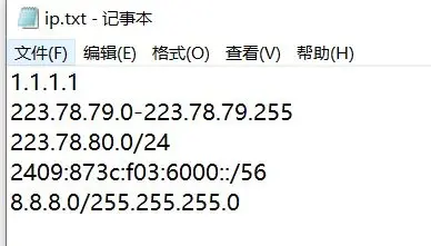 每行一个地址段 支持 单IP、CIDR、子网掩码、IP范围