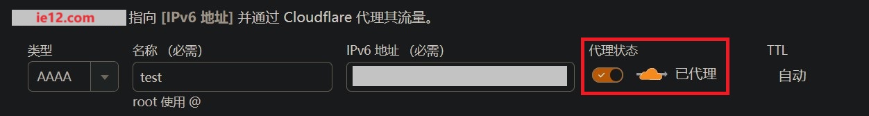这里可以选择AAAA记录(IPv6)也可以选择CNAME