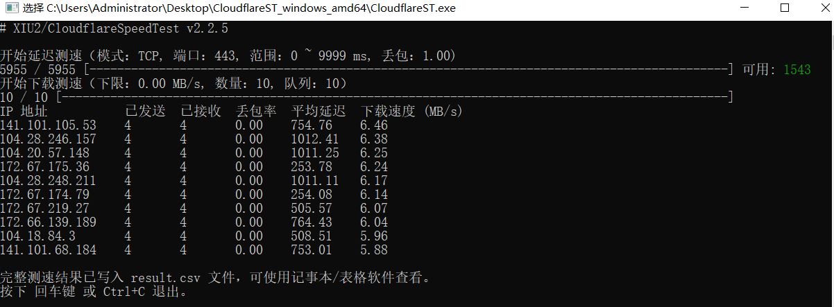 Github:https://github.com/XIU2/CloudflareSpeedTest
