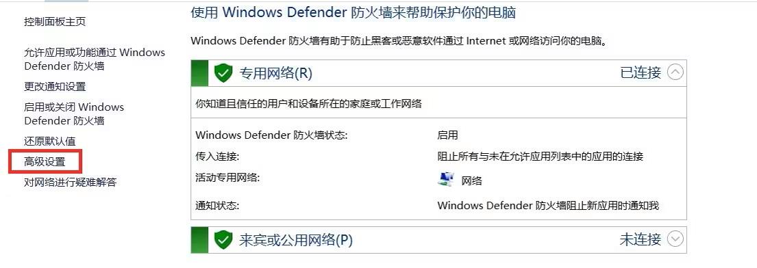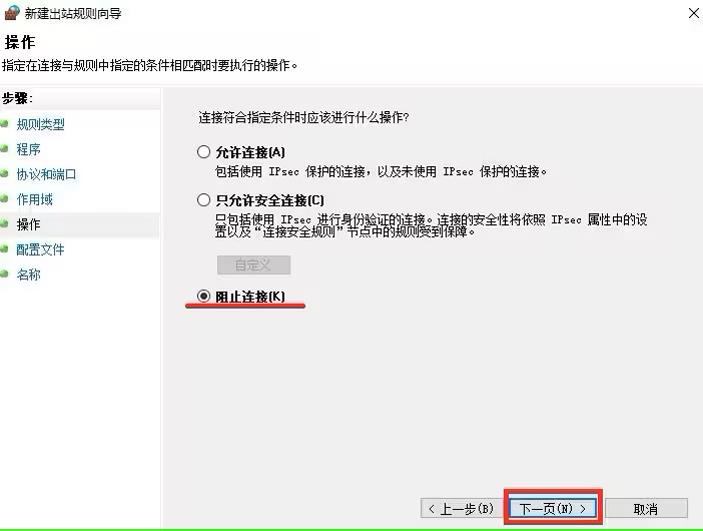 还原默认入站策略-阻止与规则不匹配的入站连接