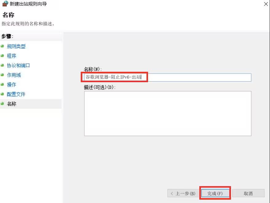 至此我们完成了使用Windows防火墙拦截浏览器IPv6请求迫使其使用IPv4的设置
