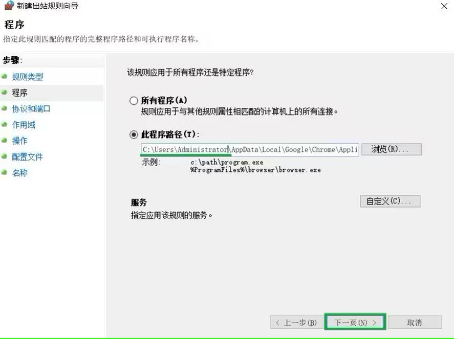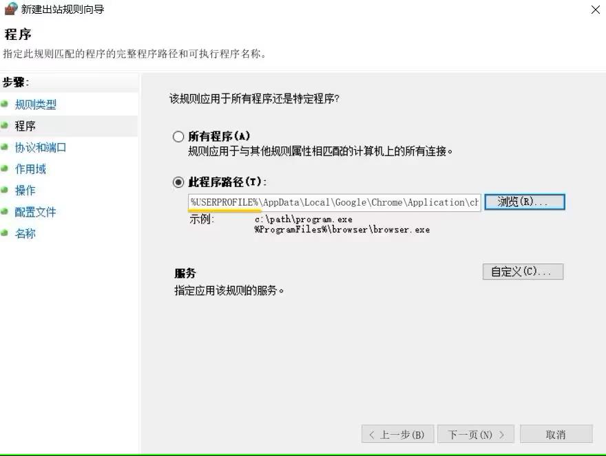 netsh advfirewall firewall add rule name="规则名称" dir=out program="浏览器主程序路径" action=block enable=yes profile=any protocol=any remoteip=2000::/3