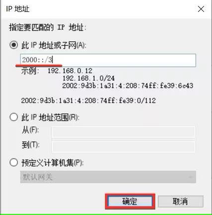 填写 2000::/3 此为 IPv6全球单播地址的前缀 可以理解为匹配所有公网IPv6地址