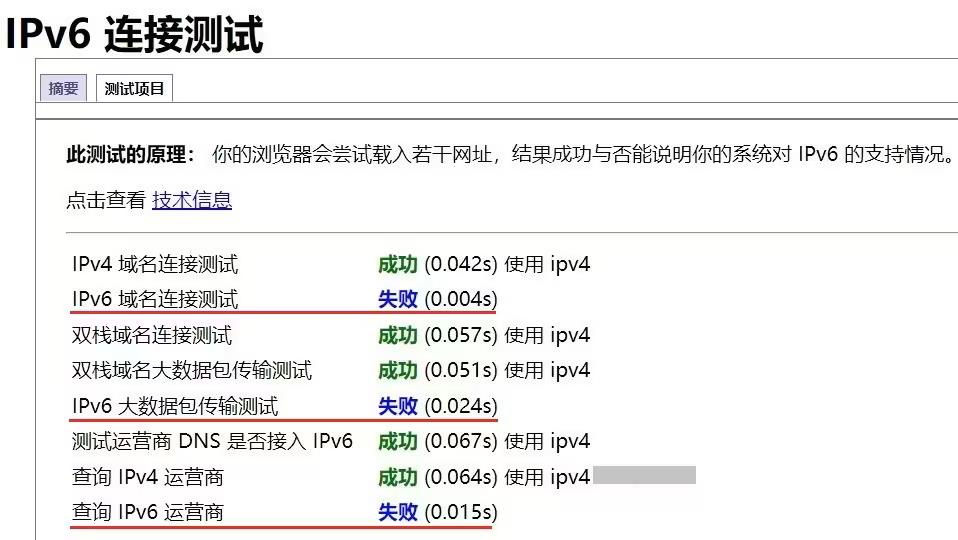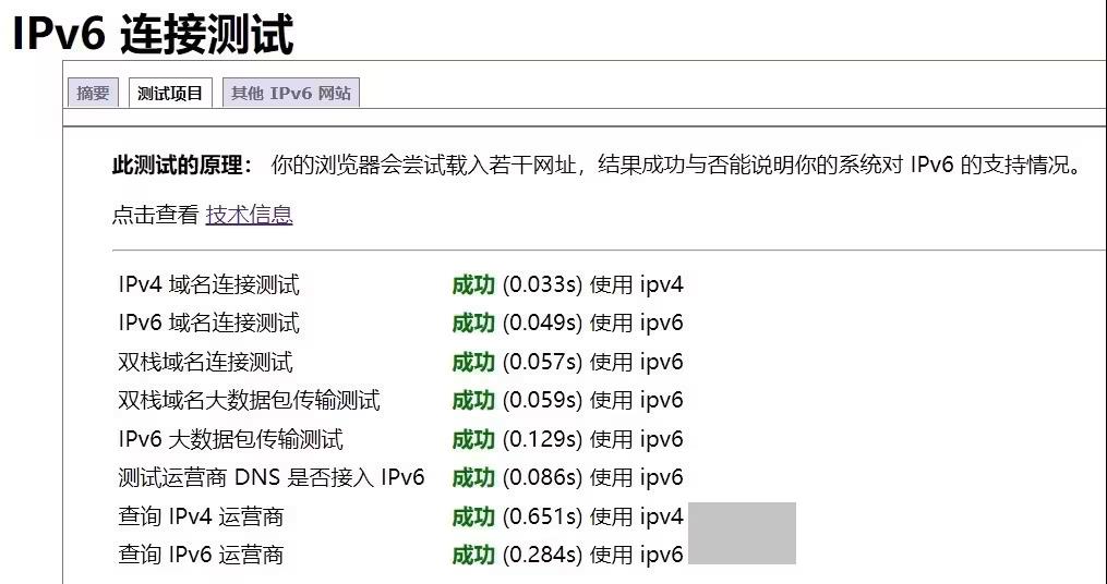 运行IPv6测试以确定当前浏览器可以使用IPv6 访问 http://testipv6.cn/