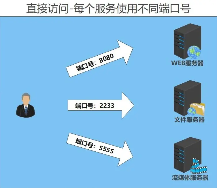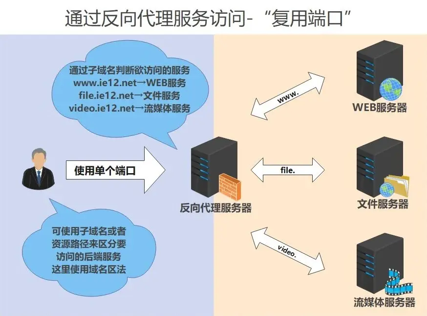 使用反向代理可以实现"端口复用"让 多个服务使用同一个端口