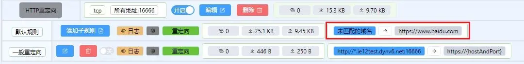 填写默认目标地址 https://www.baidu.com 》 保存规则