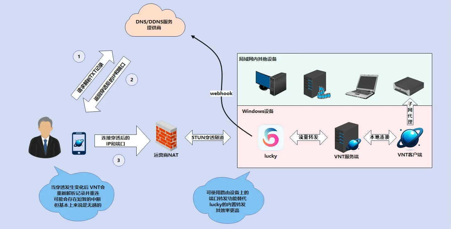 「LUCKY STUN穿透」在Windows下使用VNT组网为非HTTP服务固定STUN穿透端口