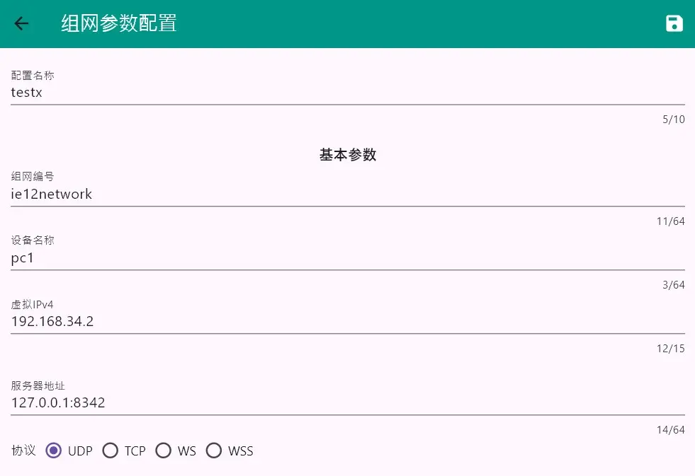 运行 vnt_app.exe 点击右上角的加号 添加组网配置