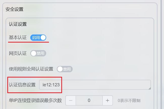 用户名和密码以英文冒号隔开 每行一条 允许配置多条