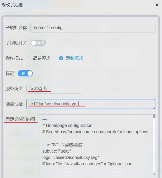 接下来我们就需要使用lucky的 文本输出功能 来输出这些配置文件