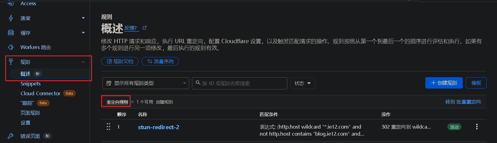 自上次的重定向教程后 Cloudflare的重定向规则界面又发生了不小的变化