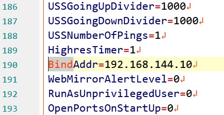 添加 BindAddr= 字段 后面加上需要绑定本地IP地址
