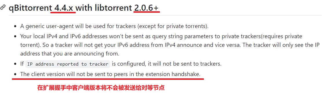 从文档来看在匿名模式下 qbittorrent 确实不会通过通告自己的客户端名称