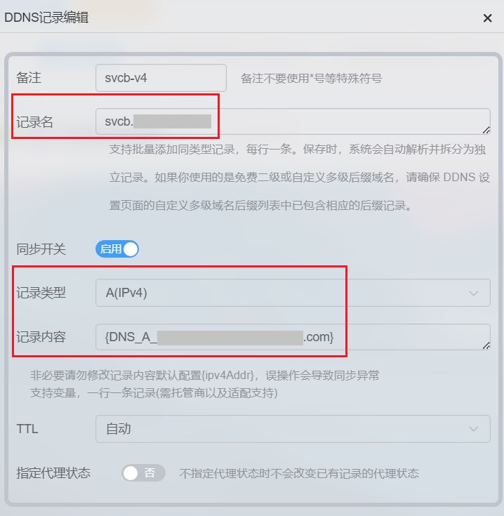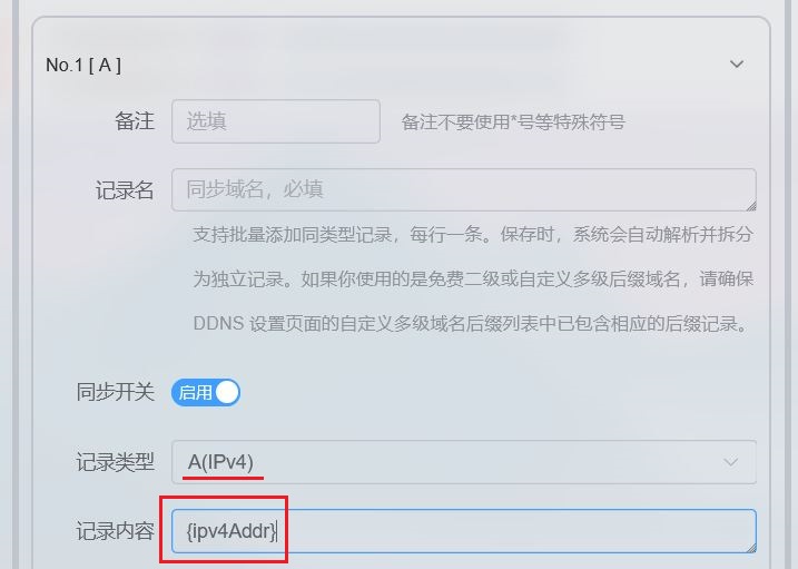 将此变量填写入lucky的动态域名规则中即可 替代默认规则的中的 {ipv4Addr}
