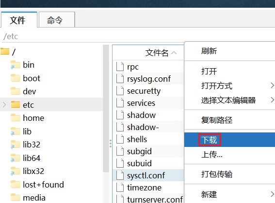 可以将 sysctl.conf 下载到win上 修改后再上传