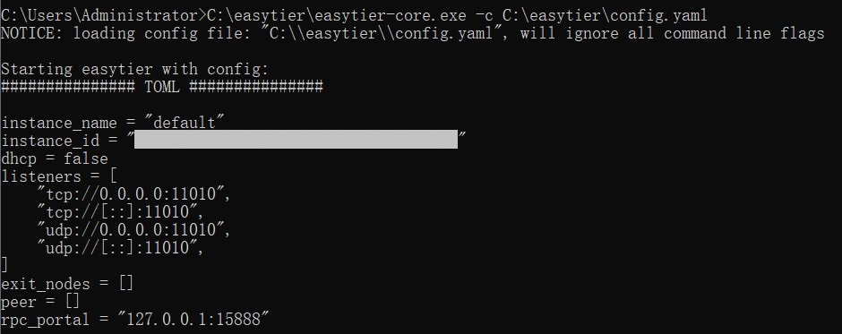 <arguments>-c C:\easytier\config.yaml</arguments>